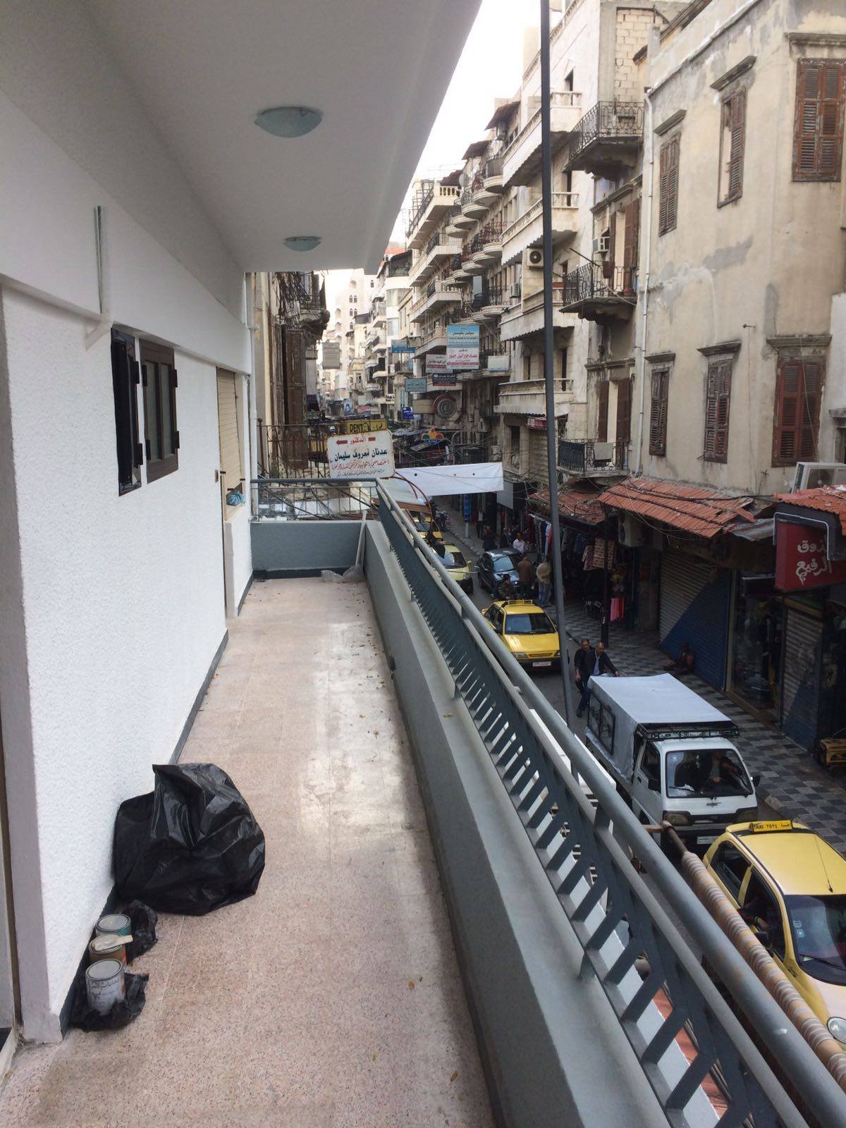 #طابق اول له بلكون بطول 12 متر مطل على شارع هنانو وساحة الشيخ ضاهر معاً. ثلاث غرف وصالون كبير . مطبخ كبير مجهز وجديد سيراميك ورخام كامل، حمام خاص مع غرفة دوش سيراميك كامل ودوش على الطريقة الاوروبيه. منفوض حديث مع تمديدات المكيف .