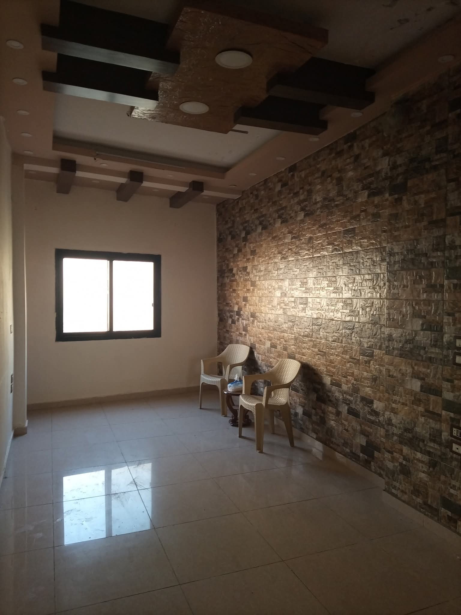 # للاجار شقة فاضية طابق اول فني ٣ نوم وصالون ومنافع اكساء ممتاز