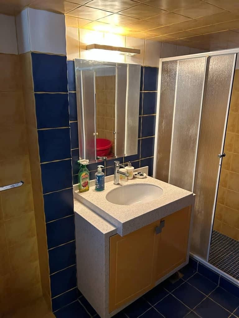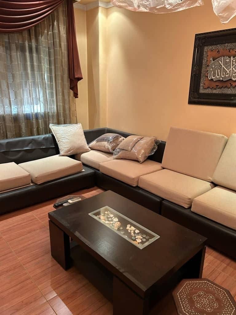 التوزيع غرفتين وصالون ومطبخ وحمامين وبرندا