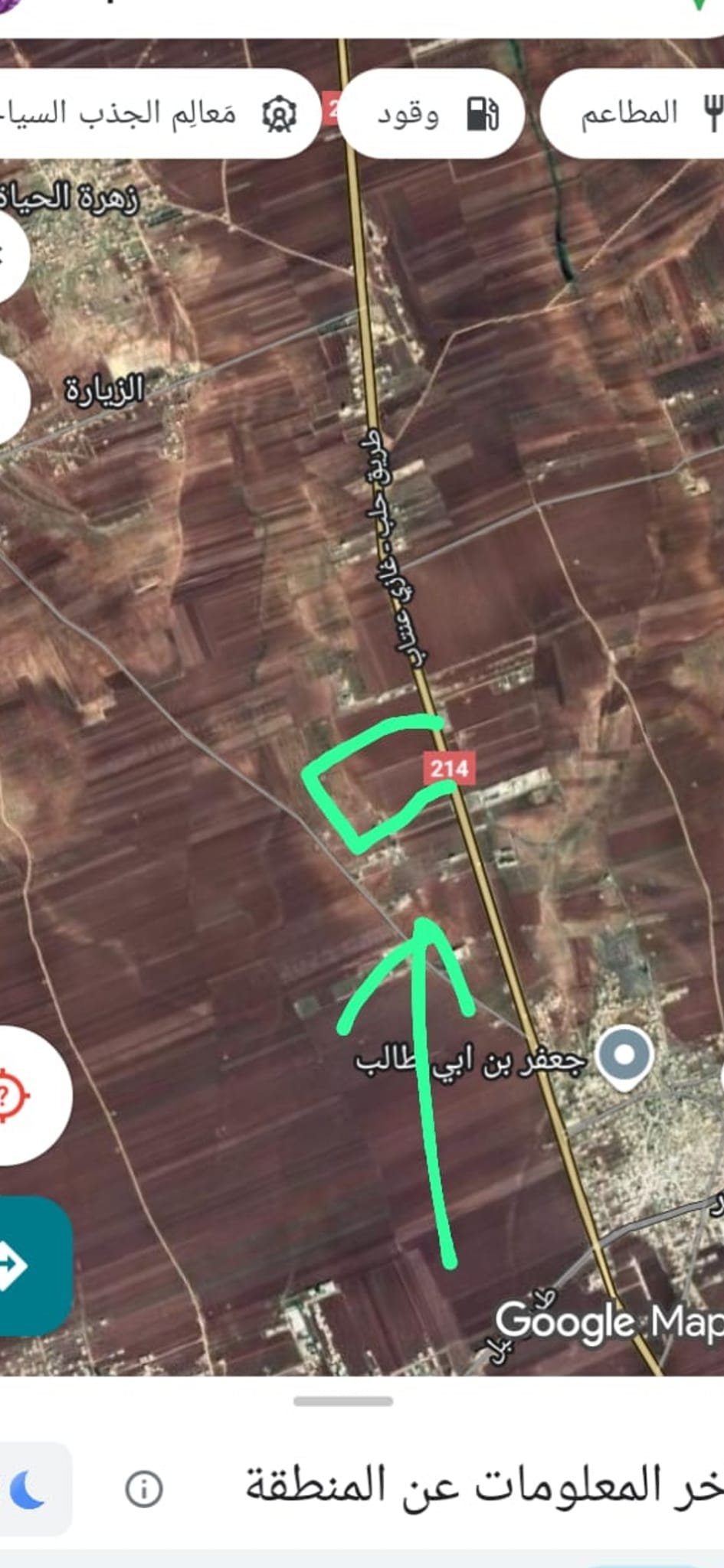 الموقع عند مفرق الزيارة بعد نبل غربي طريق غازي عنتاب