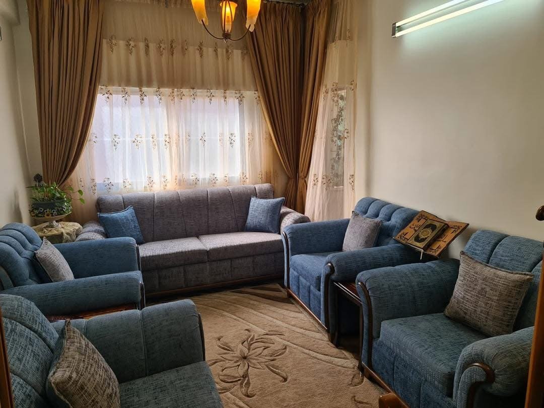 التوزيع 4 غرف و صوفا صغيرة و مطبخ ومنافع و برندا و حمامين