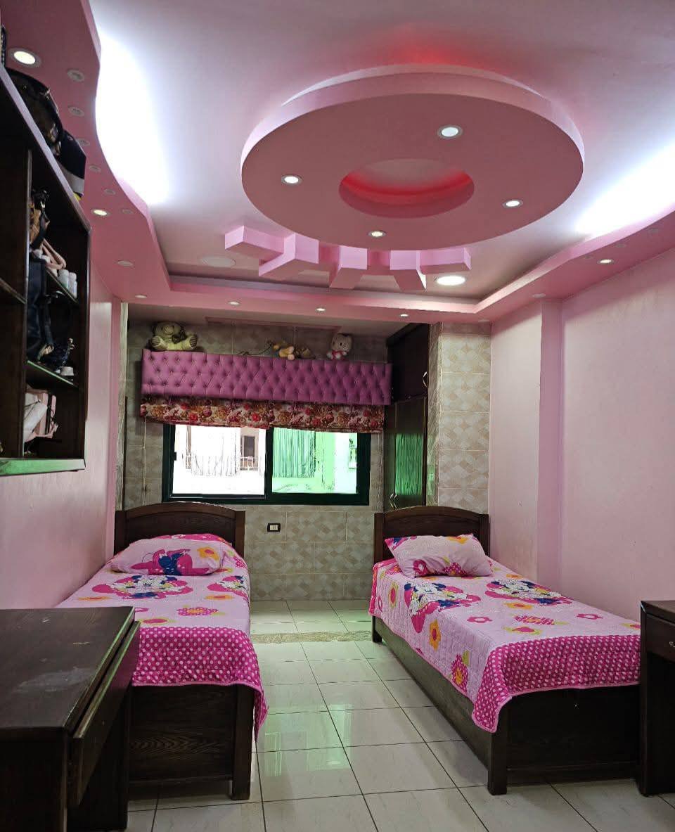 صالون + مطبخ + ثلاث غرف نوم احداها ماستر + حمامين + بلكونين