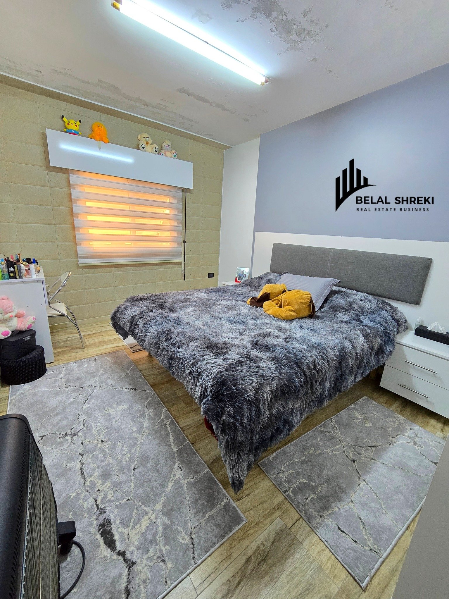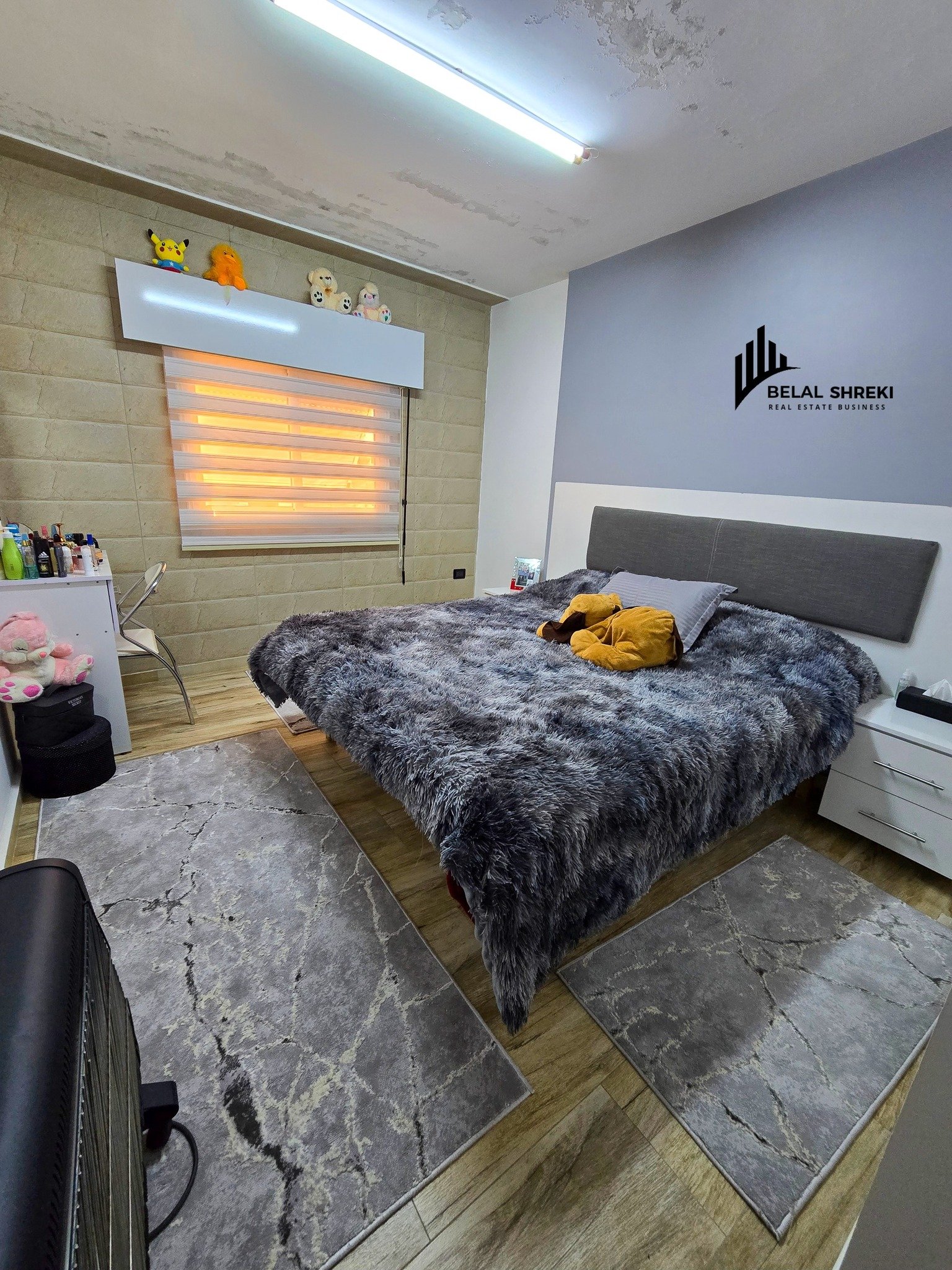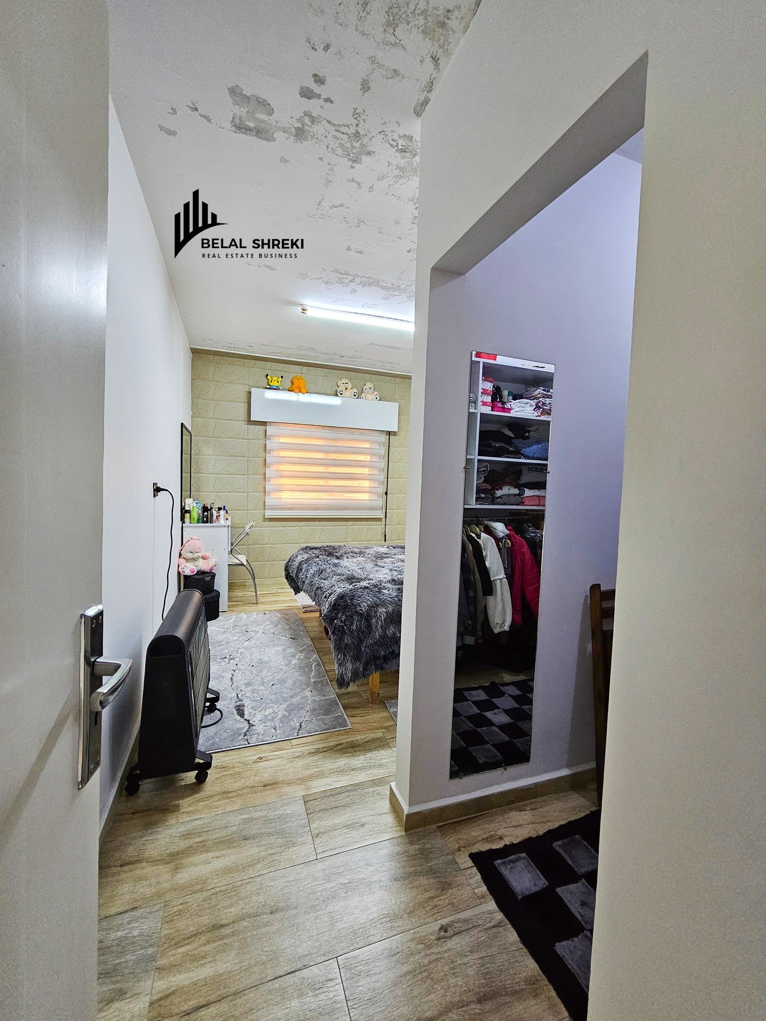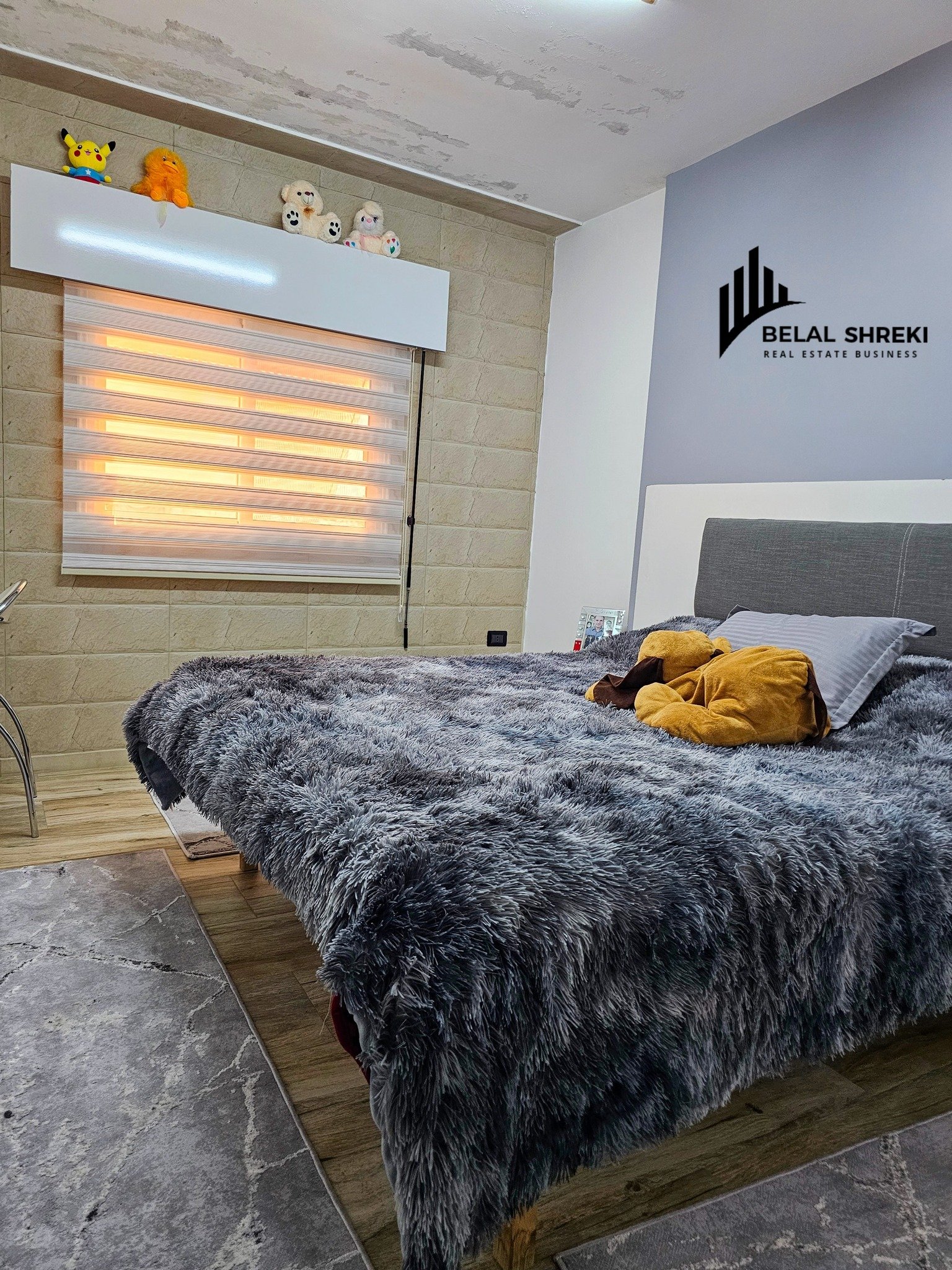 #شقة ضمن بناء جديد ملبس حجر مؤلفة من صالون واسع وغرفتين نوم ومطبخ شرح وحمام وبرندا عدد ٢(احداهما زاويةحول الشقة مع مدخلين من الصالون ومن المطبخ والاخرى من غرفة النوم ٢)